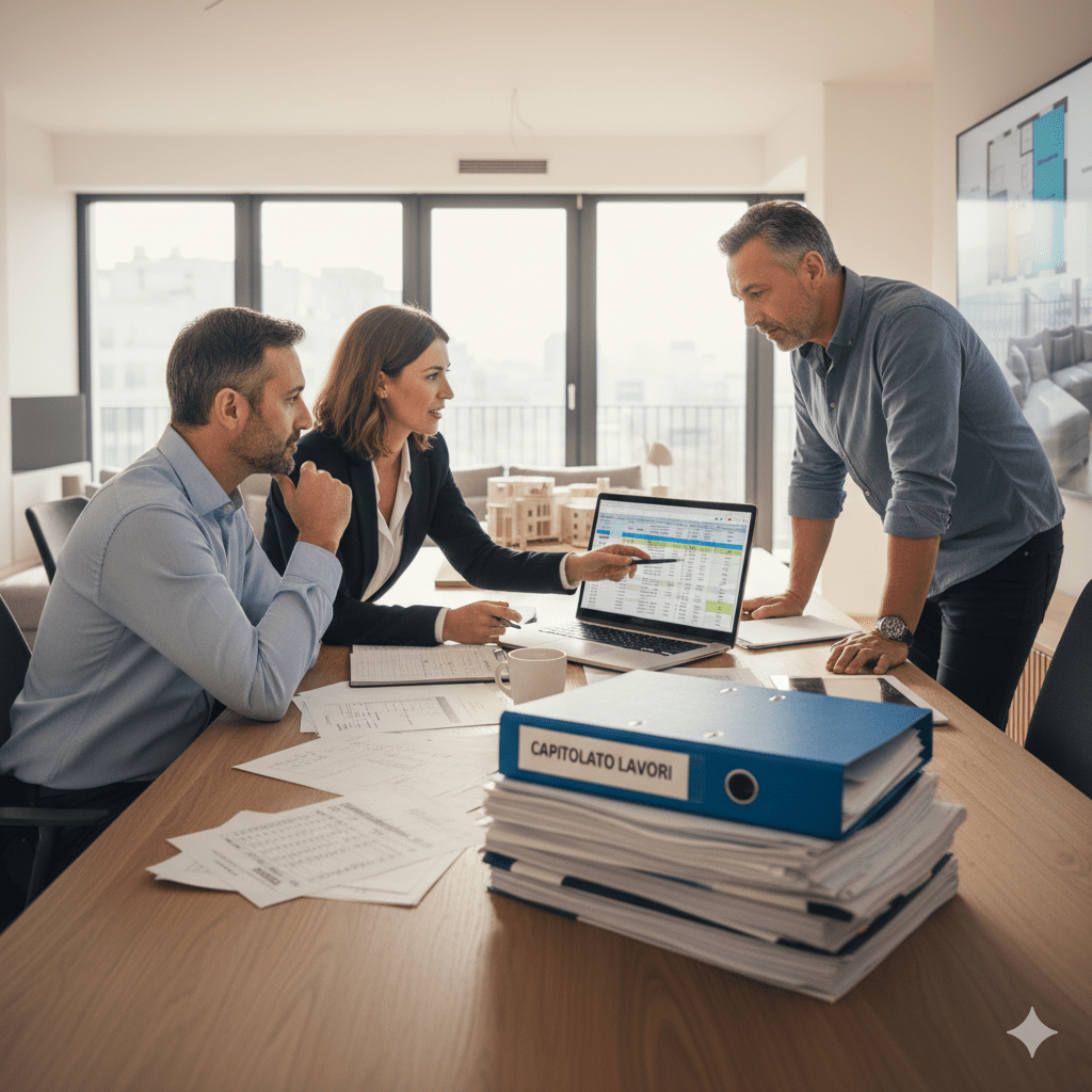 - Computo Metrico e Capitolato: Una volta approvato il progetto di massima, si redige l’elenco lavori (capitolato) e il computo metrico di dettaglio. Questi documenti quantificano con precisione i materiali e le lavorazioni necessarie, e sono fondamentali per richiedere preventivi comparabili alle varie imprese edili.