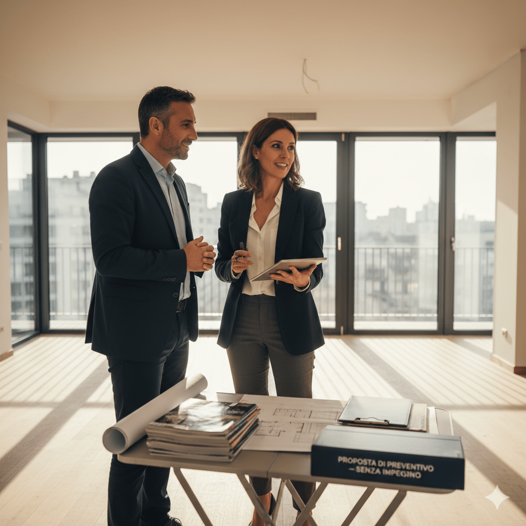 - Conoscenza del Cliente e Definizione dei Servizi: Il processo inizia con un incontro conoscitivo presso l’immobile. Questa fase è cruciale per comprendere a fondo le esigenze, i desideri e le aspettative del committente. Si definiscono i servizi professionali richiesti e, in base a questi, viene redatto un preventivo professionale dettagliato, fornito senza alcun impegno da parte del cliente.